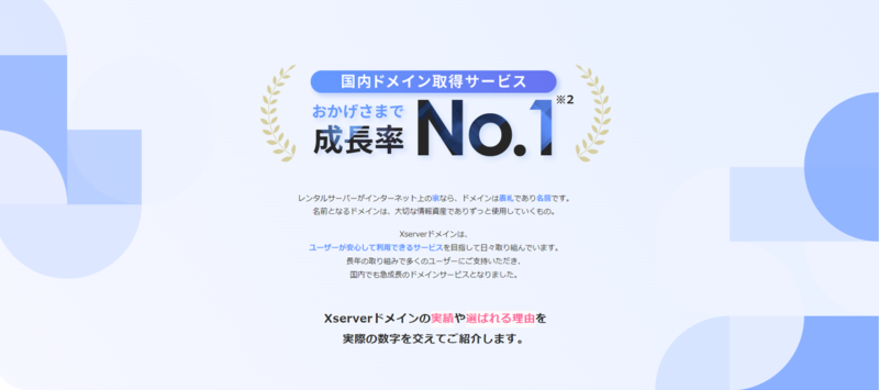 そして、そのウェブホスティングサービスの一環として提供されているのが、ドメイン取得サービスの「Xserverドメイン」です。