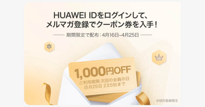 ファーウェイ メルマガ登録で1000分OFFクーポンプレゼント